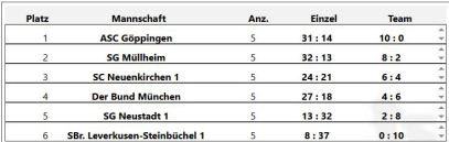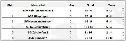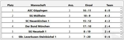 Durch einen knappen 5:4 Erfolg belegn wir derzeit einen 3.Platz in der Mannschaftswertung.