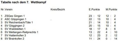 7. Regionsliga Wettkampf 2025/26 Endstand Platz 2