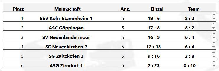 mit einem 6:3 Erfolg gegen den SC Neuenkirchen, konnten wir den Sieg in der Königsklasse mit 10:0 Punkten erringen . Somit sind wir ungeschlagen für das Finale in München- Lochhausen qualifiziert.