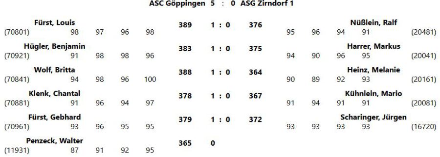 mit einem 5:0 Erfolg gegen den ASG Zirndorf beim letzten Liga Wettkampf, haben wir wieder den Aufstieg in die 1.Liga geschaft.