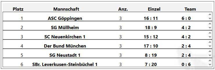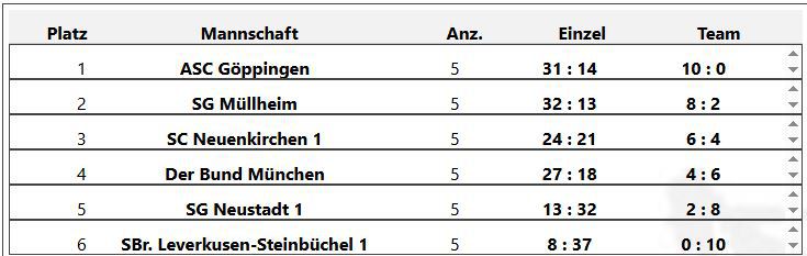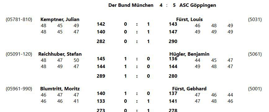 mit einem knappen 5:4 Erfolg gegen den Bund München, konnten wir die Tabellenführung erobern.