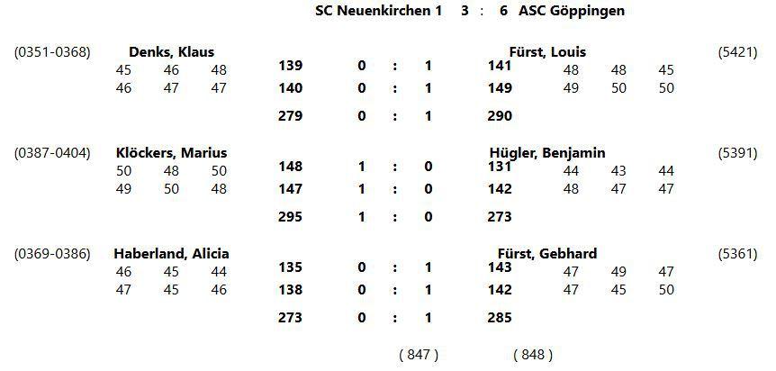 Schlechter Start unserer Armbrustliga Mannschaft. Leider ging der erste Kampf gegen den SC Neuenkirchen 2 mit 3:2 verloren. Die Ergenisse und Tabelle siehe unten.