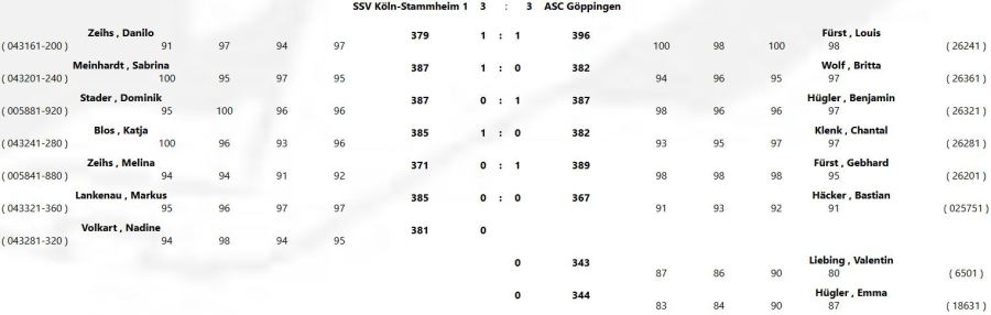 Knapper Sieg gegen Köln-Stammheim mit 3:2 Tabelle Platz 2 mit 4:0 Punkten